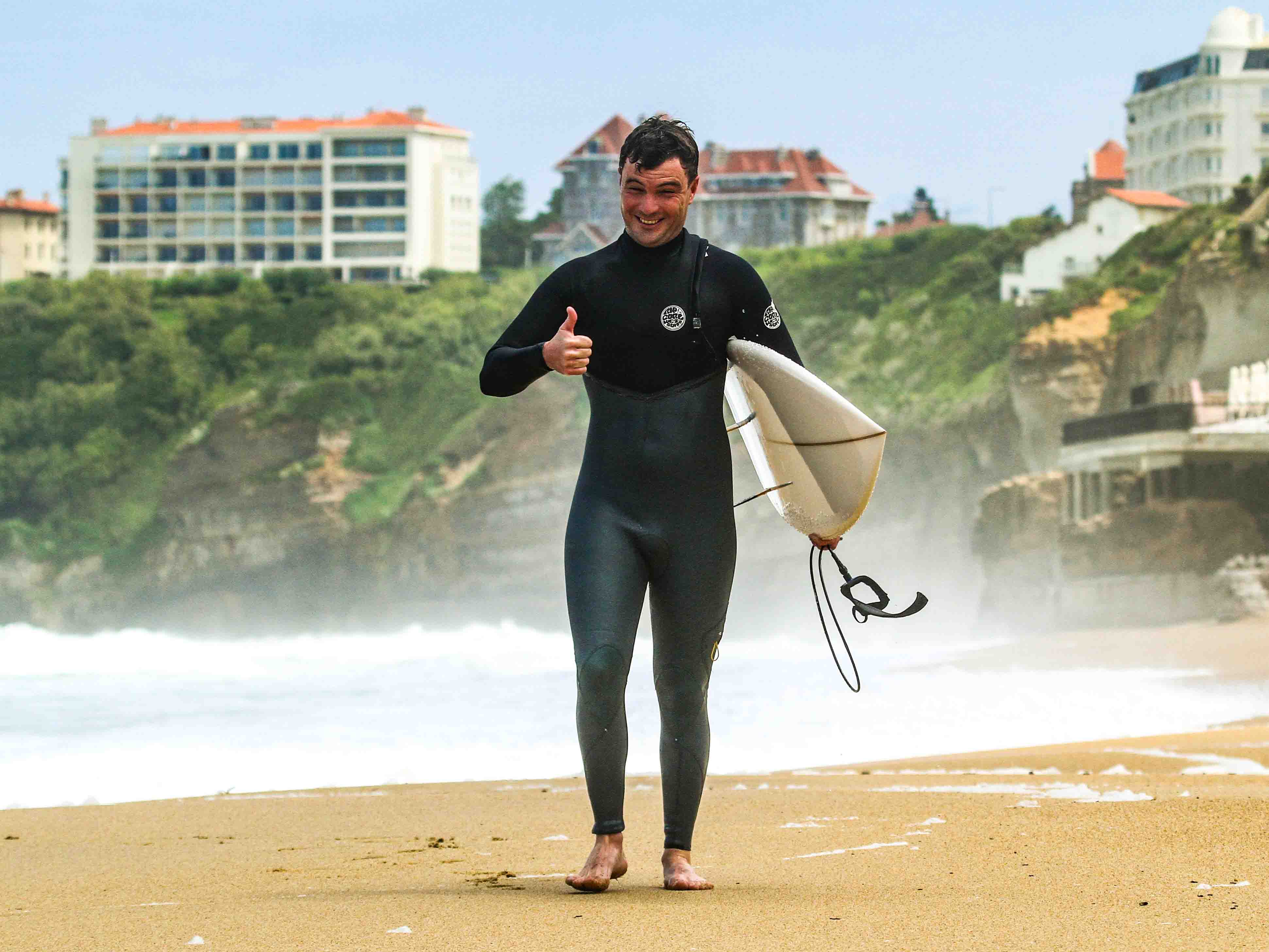 "Haha, eh bien… on dit que les esprits similaires pensent pareil, tu vois ! À Biarritz, j’ai trouvé ce que je pense être une seconde maison. J’ai découvert un endroit qui m’a apporté de nouvelles amitiés, qui m’a reconnecté à des parts de moi-même, peut-être un peu différentes. J’avais d’autres priorités, mais ça m’a rappelé l’amour que j’avais pour le surf et l’entraînement. Biarritz est un lieu avec une grande culture du surf et de la mer, ce que je trouve spectaculaire et qui me plaît beaucoup. Je crois avoir trouvé un lieu d’inspiration. Biarritz m’a donné de nouveaux amis, des personnes que j’estime beaucoup, comme toi et d’autres, et cet endroit s’est senti comme un foyer, frère… Je sens qu’il m’a accueilli et accepté, et pour cela je suis très reconnaissant. Ça a fait que mon esprit se sente à l’aise, en paix et en bien-être. Et à partir de là, beaucoup de choses se passent bien, deviennent plus faciles. Biarritz m’a aidé à me recentrer, à trouver un équilibre, à trouver un endroit où je me sens comme chez moi.